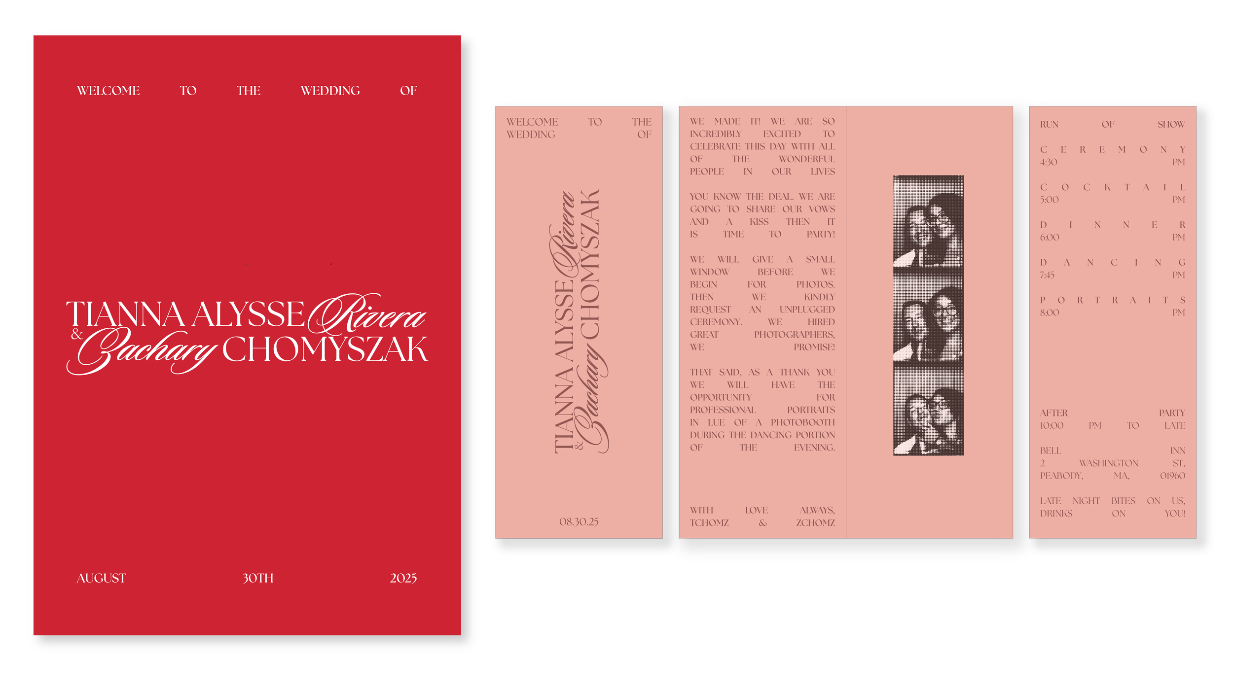 In February 2024, I got engaged to my now husband, Zack Chomz. As designers who met at a Boston studio, we designed nearly every detail of our wedding—a true designer’s dream. Being both the client and the designer was unconventional, but it became one of my favorite and most meaningful projects.