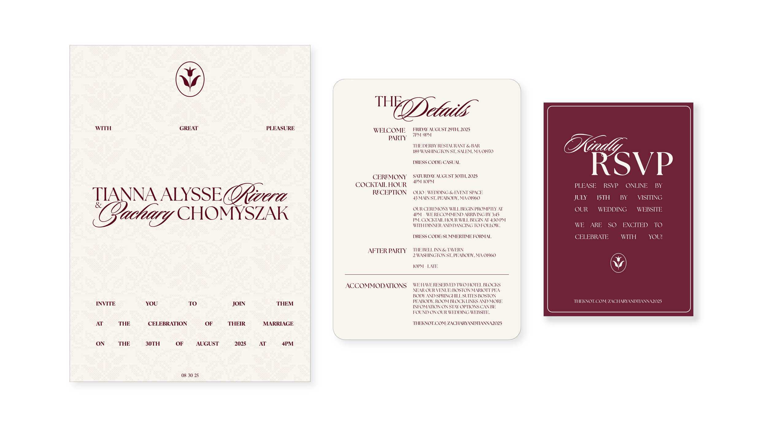 On August 30, 2025, we became T & Z Chomz. From wax-sealing our cat onto menus in our tiny Allston kitchen to building our own florals, every detail was worth it.
